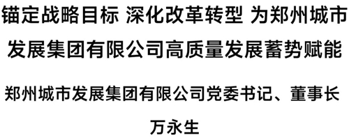 下面,為您推出鄭州城市發展集團有限公司黨委書記、董事長萬永生署名文章《錨定戰略目標 深化改革轉型 為鄭州城市發展集團有限公司高質量發展蓄勢賦能》——
