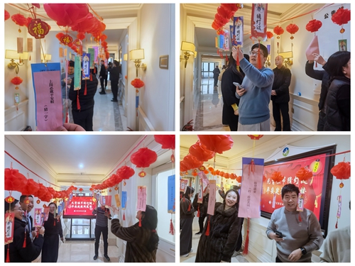 城市更新事業(yè)部舉辦了“團圓迎元宵,黨工聚合力”猜燈謎活動。一排排紅彤彤的燈籠高高掛起,每個燈籠下方都有一條待開啟的燈謎,內(nèi)容涵蓋傳統(tǒng)文化、黨建知識、黨紀法規(guī)、廉政文化及平安建設(shè)等相關(guān)內(nèi)容,既有通俗易懂的趣味猜題,也有較為復雜的抽象謎題,員工們在歡聲笑語中解答謎題,同時也學習了不少有用的知識。